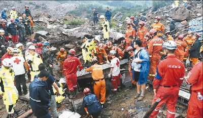 受台风影响,浙江省丽水市遂昌县北界镇苏村上村自然村9月28日傍晚发生山体滑坡,一些民房被埋。截至29日17时30分,已有15名村民脱险,1人遇难,仍有26人失联。目前,浙江省调集2000余名救援人员在现场紧张救援。图为救援现场。