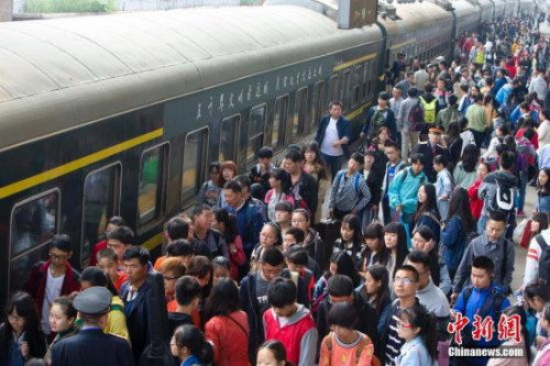 山西太原火车站,民众正在排队乘车。 张云 摄