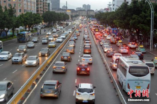 10月6日,进入福州市区主要道的路车流量增大。各地车站迎客运返程高峰。 中新社记者 吕明 摄