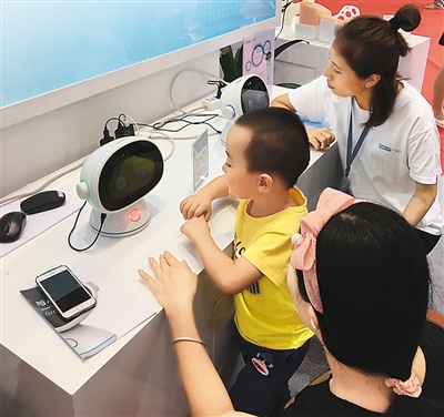 在现场展示的产品吸引了目标客户的注意。“豆豆”不仅外观小巧可爱,还有着一颗聪明的“大脑”,这使得它身边总是围着非常多的小朋友。在展会现场,一位小朋友在孜孜不倦地对“豆豆”进行提问。