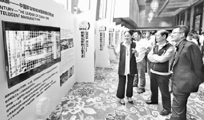 图为嘉宾们在大会之余参观青岛2016世界互联网工业大会成果展览。