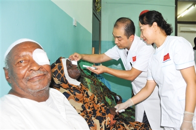 中国医生为苏丹百岁老人做白内障手术的事迹在当地传为佳话。“光明行”苏丹医疗队领队、西安市第一医院副院长宋国忠向记者介绍说,当时一位自称80岁的老人在同样白发苍苍的儿子陪同下来到医院,希望中国大夫能为他进行手术。经检查发现,他一只眼睛已经失明,另一只还有微弱光感,但其身体较为虚弱,手术风险较大。为了圆老人的心愿,经反复检查研究,在严密监护下,医疗队的赵俊宏医生为他成功实施了白内障手术。老人时隔多年后终于重见光明,十分激动,终于对医生道出了实情。原来他已经101岁了,因年龄较大,苏丹当地医院都不敢收治,他只好隐瞒年龄来找中国医生,多亏了医生的精湛医术,才使自己恢复视力。
