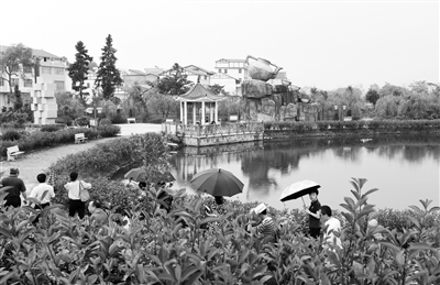 游客在宁化县石壁镇杨边村客家文化休闲公园参观。