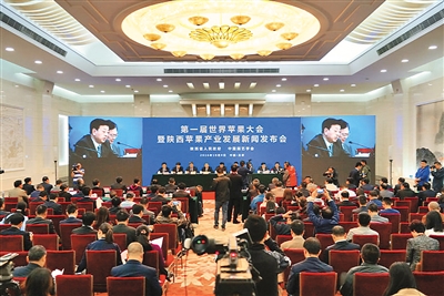 此次苹果大会以“变革的苹果使更多人受益——现代科技与苹果可持续发展”为主题,集中展览展示全球苹果产业最新科技成就和品牌建设成果,开展苹果科技及配套产业学术交流。国际园艺学会主席罗狄克·德鲁出席会议,来自世界30多个苹果主产国的150多位知名专家与会,应邀参会嘉宾1000多人,参会人员总数突破4万人。