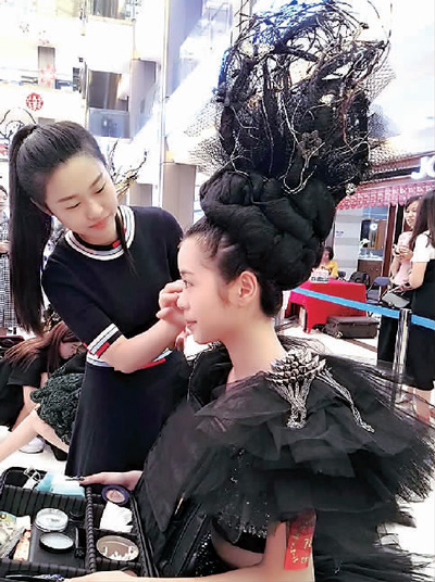 参加第九届穗港澳蓉青年技能竞赛的选手在备战美容项目。