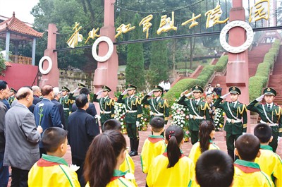 贵州省赤水市日前在红军烈士陵园举办纪念长征胜利80周年系列活动。图为各界人士向红军烈士敬献花篮。