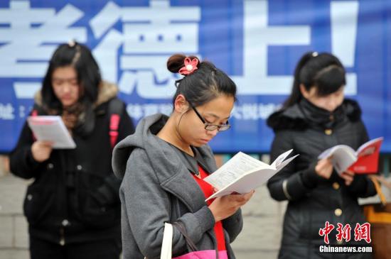 资料图:考生在做考前准备。中新社发 韦亮 摄