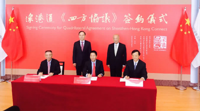 10月11日,深圳证券交易所、香港联合交易所有限公司、中国证券登记结算有限责任公司和香港中央结算有限公司,在深圳共同就深港通签署《四方协议》。