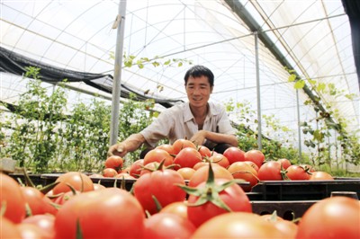 贵州省威宁彝族回族苗族自治县草海镇同心村大棚种植基地,采取“公司+基地+农户”模式经营。基地种植的番茄是从台湾引进的富士2号,有水果番茄的美誉,产量高,销路好,让当地农家走上了致富的小康路。