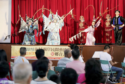 图为歌仔戏折子戏吸引金门当地民众围观。