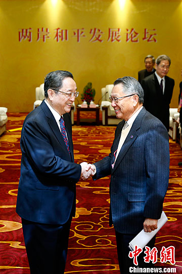 中共中央政治局常委、全国政协主席俞正声2日在北京会见了两岸和平发展论坛部分代表和主办单位负责人。