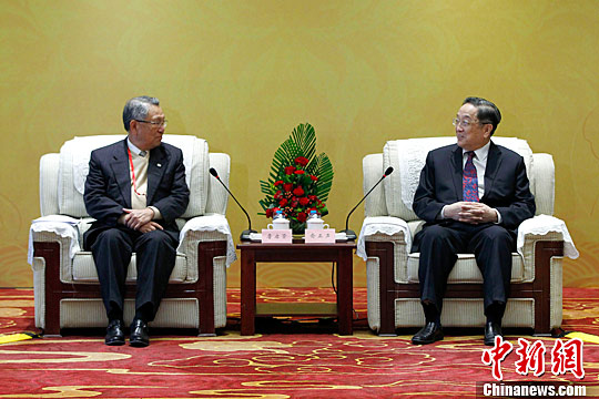 11月2日,中共中央政治局常委、全国政协主席俞正声在北京会见了两岸和平发展论坛部分代表和主办单位负责人。中新社记者 富田 摄