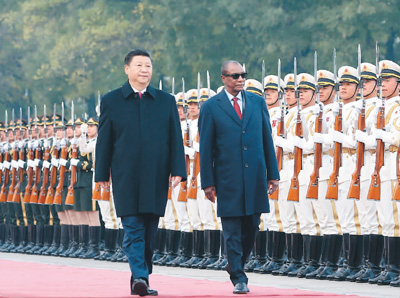 11月2日,国家主席习近平在北京人民大会堂同几内亚总统孔戴举行会谈。这是会谈前,习近平在人民大会堂东门外广场为孔戴举行欢迎仪式。