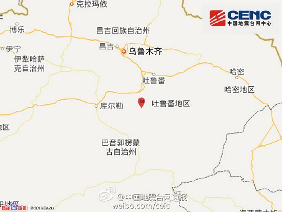 新疆吐鲁番市托克逊县发生4.0级地震 震源深度7千米