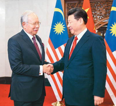 11月3日,国家主席习近平在北京钓鱼台国宾馆会见马来西亚总理纳吉布。