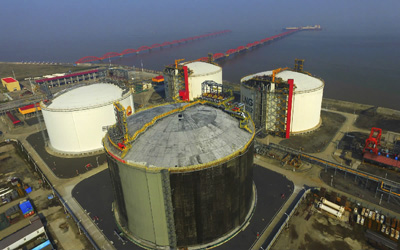 11月3日,拥有自主知识产权的中国石油国内首座20万立方米液化天然气(LNG)储罐——江苏LNG项目二期工程T-1204储罐经过6小时的进液喷淋后,顺利建立设计规定的5米液位,为储罐全速进液创造了良好条件,整个开车过程无燃放火炬,实现一次投产成功。这标志着中国石油在大型LNG储罐建造、接收站主要设备国产化方面又取得重大突破。