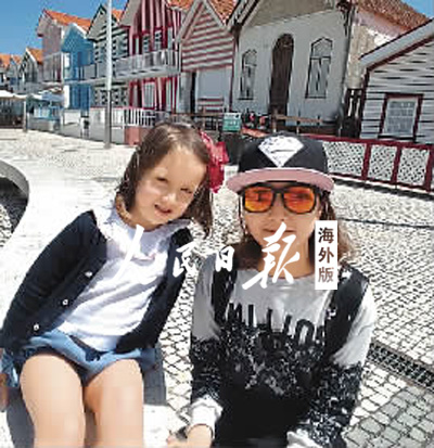 图为张小甜(化名)在葡萄牙阿威罗与当地孩子的合影。