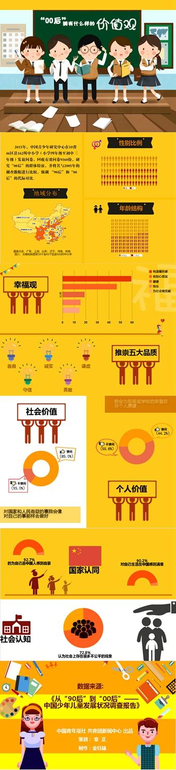 1999年、2005年、2010年和2015年,中国青少年研究中心在全国10个省市进行了4次中国少年儿童发展状况调查,并据此发布了《中国少年儿童发展状况研究报告》该报告主要以2005年和2015年的调查数据为依据,对90后和00后的特征进行描述和代际对比。