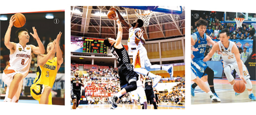 11月9日,在2016-2017赛季中国男子篮球职业联赛(CBA)第五轮比赛中,山东高速队战胜北京农商银行队(图①),辽宁药都本溪队战胜深圳马可波罗队(图②),四川品胜队战胜江苏肯帝亚队(图③)。