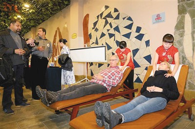 接着,外国友人还在现场体验了中医养生按摩。“这是一个难得的体验机会。”来自德国大使馆的武官顾思齐说,“我来北京1年多了,还是第一次来这里体验温泉。这里环境优美,景色迷人,有机会我和家人还会再来的。”