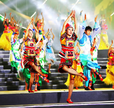 11月7日,以“同一个梦想”为主题的第四届亚洲微电影“金海棠奖”颁奖盛典在云南省临沧市举行。本届亚洲微电影艺术节共有275部作品获奖。图为颁奖晚会上的歌舞表演。
