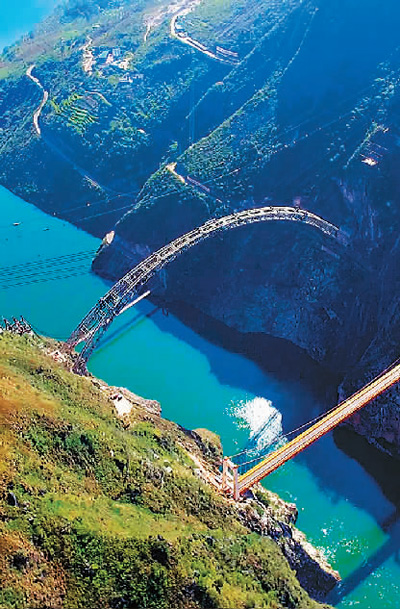 11月15日,由中国中铁大桥局采用“二次竖转”工法施工的大桥——新建大理至瑞丽铁路澜沧江特大桥钢管拱实现高精度合龙。澜沧江特大桥横跨澜沧江两岸,全长528.1米,主跨342米。