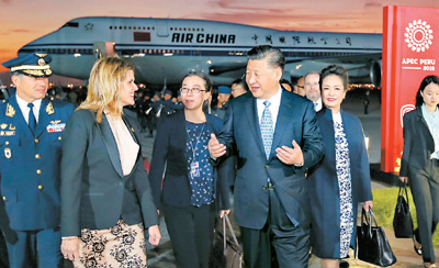 习近平抵达利马 出席APEC会议 对秘鲁国事访问