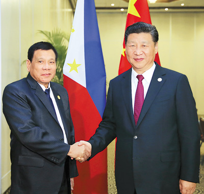 习近平指出,杜特尔特总统上个月对中国的国事访问实现了中菲关系全面改善,翻开了两国关系新篇章,为地区和平稳定注入了正能量。双方要确保中菲关系沿着正确方向稳步向前,坚持友好合作,坚持妥处分歧,坚持共同发展,使中菲睦邻友好合作关系行稳致远,以更多合作成果造福两国人民。