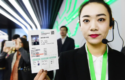 在青岛大数据体验中心,一名工作人员展示汇集个人各项数据的“未来身份证”。