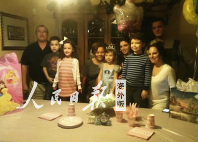每逢节日,寄宿家庭都会邀请肖少桂参加聚会。图为寄宿家庭成员过生日的场景。