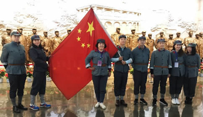 图为高研班学员参观遵义会议会址时,穿上军装合影留念。