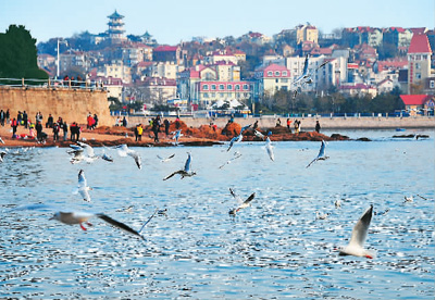 青岛迎来越冬海鸥