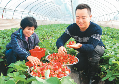 11月中旬以来,浙江省建德市今年种植的1.4万亩红颊、章姬等优质品种草莓陆续成熟,头茬鲜果畅销杭州、南京、上海等全国各地市场。这些草莓将一直可采收到明年4月底,成为农户依靠种植草莓致富增收的一条好门路。