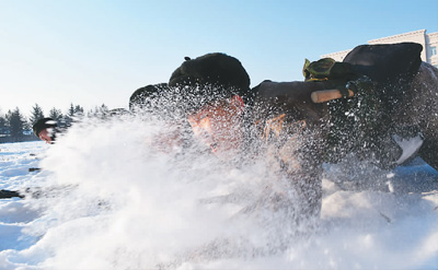 11月16日至17日,北部战区某边防巡逻艇大队新兵营全体新兵,不顾零下20摄氏度的严寒,进行雪野战术训练。