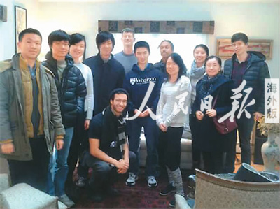 李慧子(右二)和同学一起在安靖如(左五)老师家上完美国的最后一节课,同学们和老师合影留念。