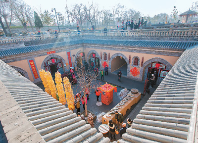 地坑院起源于人类早期穴居,距今已有2000多年的历史,被称为中国北方的“地下四合院”。图为游客在河南省三门峡市陕州区地坑院民俗文化园内游览。