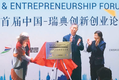 此次活动的重要环节之一就是“中国-瑞典创新创业基地”的揭牌成立仪式。在揭牌仪式(见图)后,中关村雍和航星科技园、瑞典中国校友会及瑞典职业青年协会共同签署了中国瑞典创新创业基地战略合作协议。