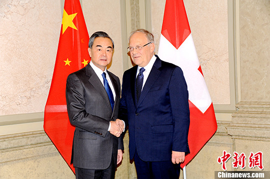 当地时间12月12日,中国外交部长王毅在瑞士伯尔尼会见瑞士联邦主席施奈德-阿曼。 中新社记者 彭大伟 摄