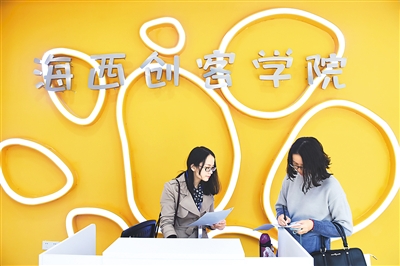 2016年以来,传统制造业基地福建省晋江市通过形式多样的创新创业大赛和一揽子吸引人才的优惠政策,不断激发各类人才创新创业的活力和激情,推进大众创业、万众创新,全力打造国际化创新型品质城市。图为两名年轻人在晋江市海西创客学院探讨项目。
