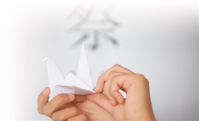 河北省香河县第二中学的学生们手折代表哀思的白色千纸鹤来向南京大屠杀遇难同胞致哀。