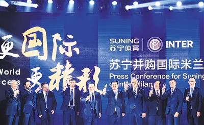 6月6日,江苏苏宁集团召开新闻发布会,宣布旗下苏宁体育产业集团以约2.7亿欧元(约合20.12亿元人民币)的总对价,通过认购新股及收购老股的方式,获得国际米兰足球俱乐部约70%的股份。