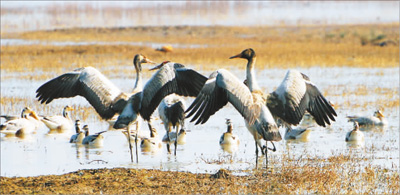 连日来,飞抵贵州省威宁彝族回族苗族自治县草海国家级自然保护区越冬的黑颈鹤、斑头雁、灰鹤等鸟类逐渐增多。草海是国内外极其少见的拥有1900多种物种的高原湿地生态系统,是全球濒危保护物种黑颈鹤最大的越冬地。