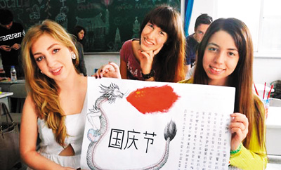 外国留学生在展示自己的作品。
