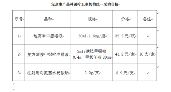 政府办基层医疗卫生机构和公立医院应当全部配备使用定点生产品种。自本通知下发之日起1年内,定点生产企业按照所划分的区域,直接在省级集中采购平台上挂网销售相应品种。政府办基层医疗卫生机构使用的定点生产品种,应当委托省级药品采购机构按照统一价格(见附件2),从定点生产企业集中采购、集中支付货款;公立医院也应当按照统一价格从定点生产企业采购相应品种;鼓励其他医疗卫生机构采购使用定点生产品种。