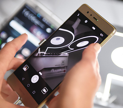 2016年6月7日,嘉宾在俄罗斯莫斯科举行的发布会上使用P9手机。当日,华为公司在俄罗斯首都莫斯科为旗下最新智能手机P9举行发布会。与徕卡公司合作开发的双摄像头拍照系统是此次发布的一大亮点。