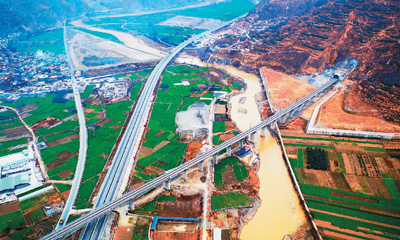 12月26日,K2618次“陇南号”列车驶出岷县车站,标志着兰渝铁路岷县至广元段正式开通运营。据了解,此次开通的兰渝铁路岷广段连接西北的甘肃岷县和西南的四川广元,全长293公里,桥隧比高达91%。图为兰渝铁路甘肃陇南境内的汉王特大桥(右)与高速公路及国道交错。