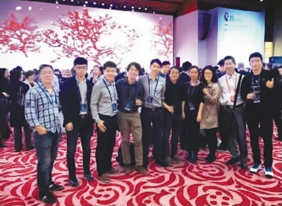 图为博士们在海交会主办方组织的欢迎晚宴上合影。