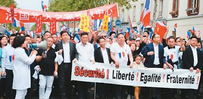 图为1万多名法国华人9月4日在巴黎示威,要求维护社区安全。