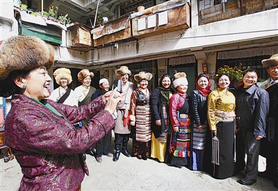 拉萨市城关区八朗学社区的德玛康萨大院是由藏、汉、回等民族45户家庭组成的大院。这里的居民邻里守望、团结互助,构筑了一道民族团结一家亲的美丽风景。