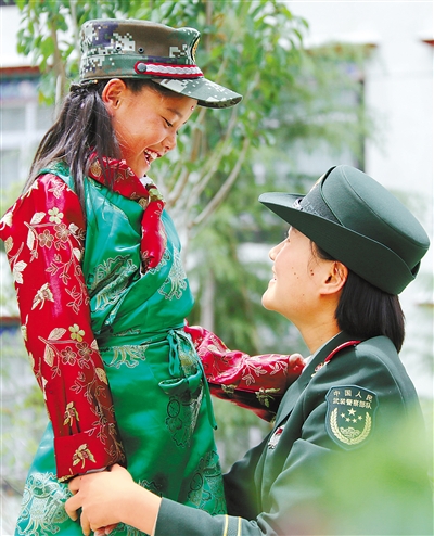 “六一”儿童节前夕,西藏公安边防总队组织官兵前往拉萨市儿童福利院,看望慰问福利院儿童。郑永波 何宇恒 摄